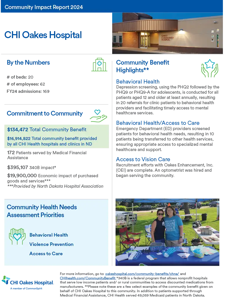 CHI Oakes Hospital provided $134,472 total community benefit in FY24